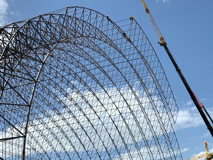 (2)网架加工前应对现场尺寸进行复测,确认无误后方可进行加工、安装;网架制作、运输、安装应遵守《空间网格结构技术规程》JGJ7-2010、《钢网架长宁螺栓球节点》JG/T 10-2009、《钢网架长宁螺栓球节点用高强度螺栓》 GB/T 16939-2016、《长宁钢结构长宁工程长宁施工规范》 GB50755-2012、《长宁钢结构长宁工程长宁施工质量验收标准》 GB50205-2020。